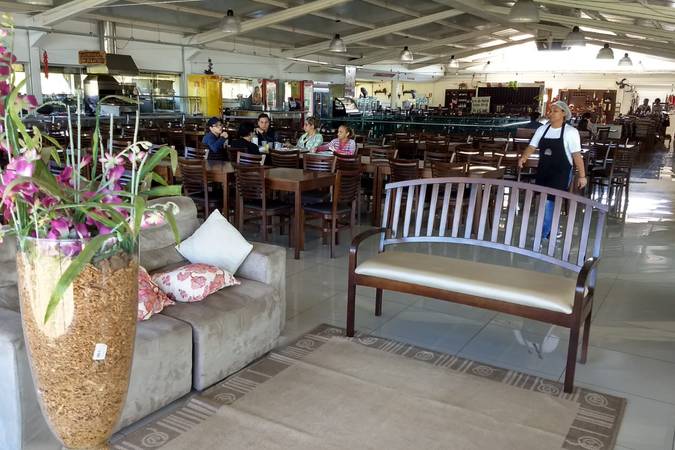 Além da alimentação, conta com loja de artesanatos e produtos regionais para levar como doces, pães, biscoitos, entre outros.