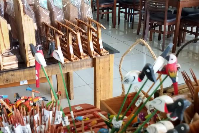 Além da alimentação, conta com loja de artesanatos e produtos regionais para levar como doces, pães, biscoitos, entre outros.