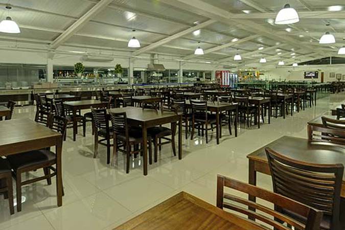 Pela manhã é servido um café da manhã tradicional, com frutas, pães, variedade de bolos, salgados, frios, sucos, iogurtes e bebidas quentes. No almoço e jantar o buffet é self-service com cardápio variado, comida caseira e regional, incluindo carnes grelhadas e churrasco.