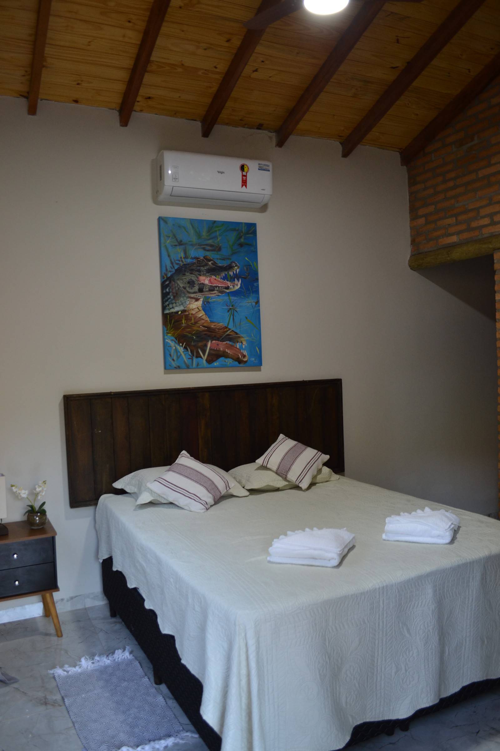 A ecopousada foi cuidadosamente pensada para oferecer conforto, simplicidade e hospitalidade pantaneira em perfeita harmonia com o meio ambiente. Sua arquitetura valoriza o estilo rústico, com detalhes em madeira e pedra, e espaços abertos que convidam o visitante a respirar o ar puro da serra. O som dos pássaros e o vento suave entre as árvores são companhia constante para quem se hospeda por aqui.