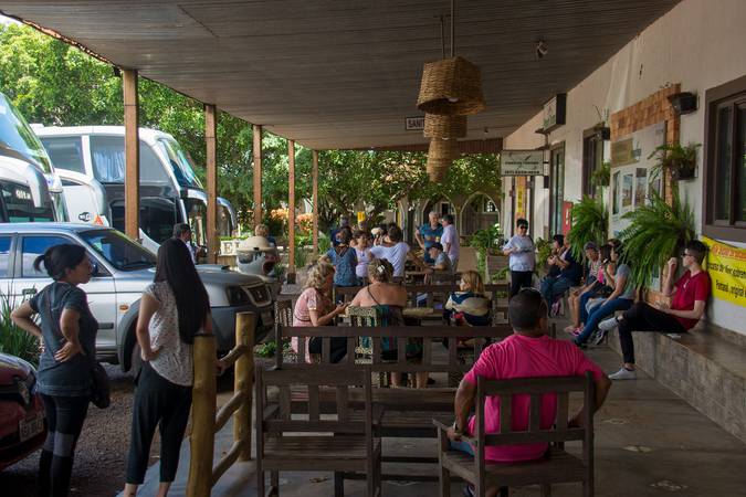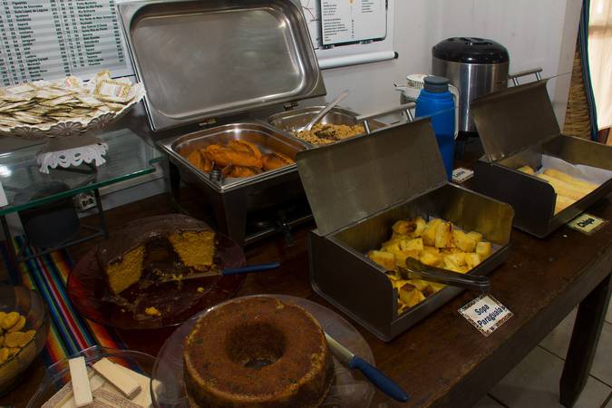 Além disso, há variedades de lanches, buffet self-service de comida caseira e pantaneira, além de produtos para levar como pães, doces e bebidas típicas.